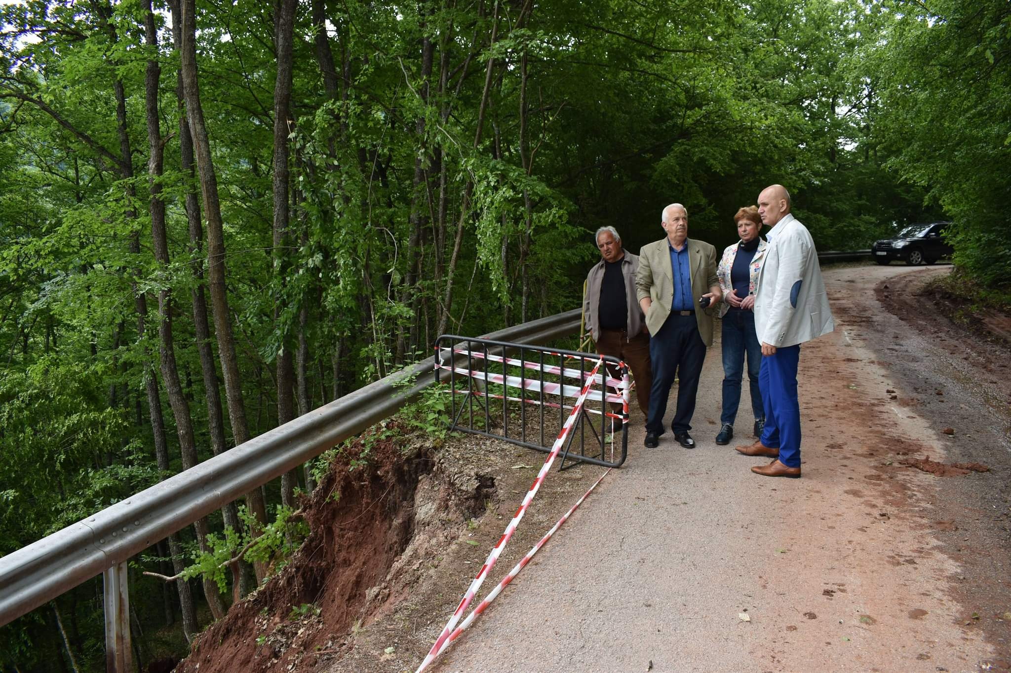 Зам.-областният управител на Перник Иво Иванов на място се запозна с частичното пропадане на пътя, който води към село Банкя, община Трън.