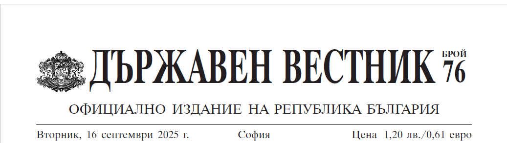 ДЪРЖАВЕН ВЕСТНИК БРОЙ 76/16.09.2025Г.